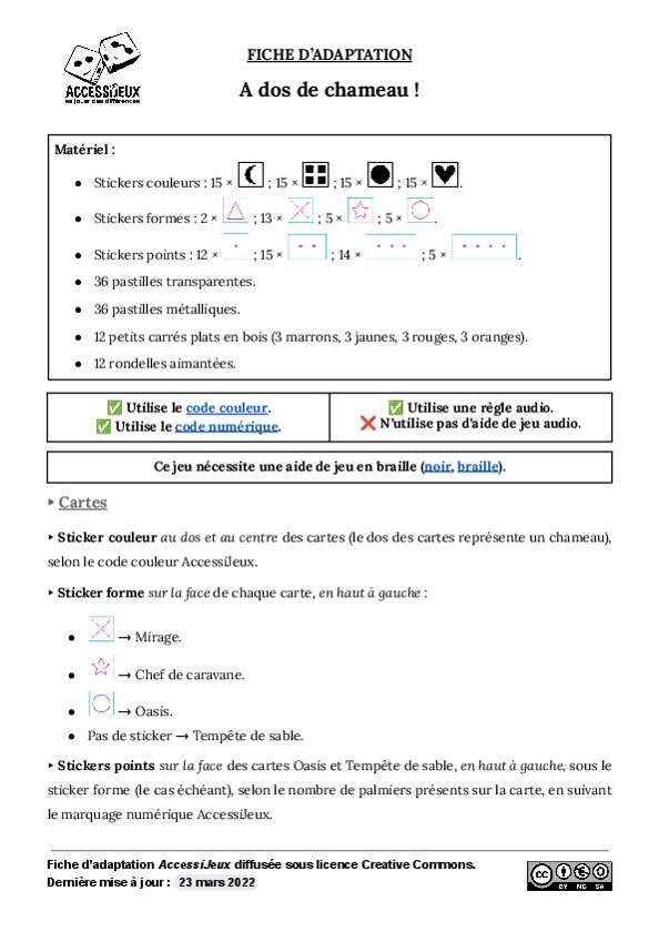 C’est un super mode d’emploi qui vous explique comment, à partir du matériel d’adaptation, rendre vos jeux accessibles aux déficients visuels. (au choix d’ajouter : « le tout avec le matériel simple vendu par la boutique. »)